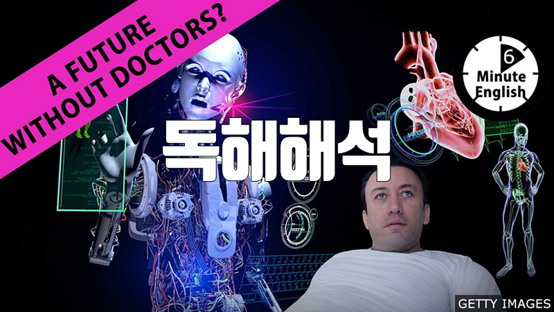 이 자료는 BBC Learning English 코너의 6 Minute English가 매주 재공하는 스크립트를 직역한 것입니다. 이번 주 스크립트의 주제는 'A future without doctors?' 입니다. 해석은 철저하게 직역하였습니다. 관계사절 등의 절이나 긴 부정사, 동명사구, 삽입구 등은 이해를 위해 []를 사용해 묶었습니다. 이 글의 목적은 번역이 아니라 원문을 영어적으로 이해하는 것이기 때문입니다.