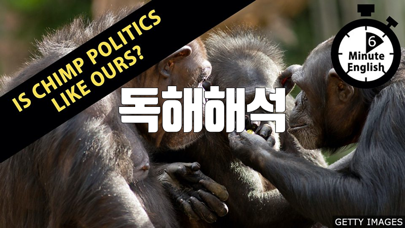이 자료는 BBC Learning English 코너의 6 Minute English가 매주 재공하는 스크립트를 직역한 것입니다. 이번 주 스크립트의 주제는 'Is chimp politics like ours?' 입니다. 해석은 철저하게 직역하였습니다. 관계사절 등의 절이나 긴 부정사, 동명사구, 삽입구 등은 이해를 위해 []를 사용해 묶었습니다. 이 글의 목적은 번역이 아니라 원문을 영어적으로 이해하는 것이기 때문입니다.