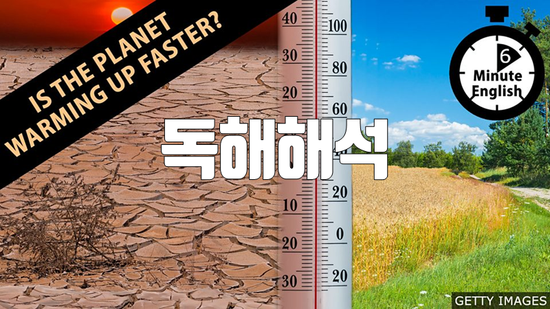 이 자료는 BBC Learning English 코너의 6 Minute English가 매주 재공하는 스크립트를 직역한 것입니다. 이번 주 스크립트의 주제는 'Is the planet warming up faster?' 입니다. 해석은 철저하게 직역하였습니다. 관계사절 등의 절이나 긴 부정사, 동명사구, 삽입구 등은 이해를 위해 []를 사용해 묶었습니다. 이 글의 목적은 번역이 아니라 원문을 영어적으로 이해하는 것이기 때문입니다.