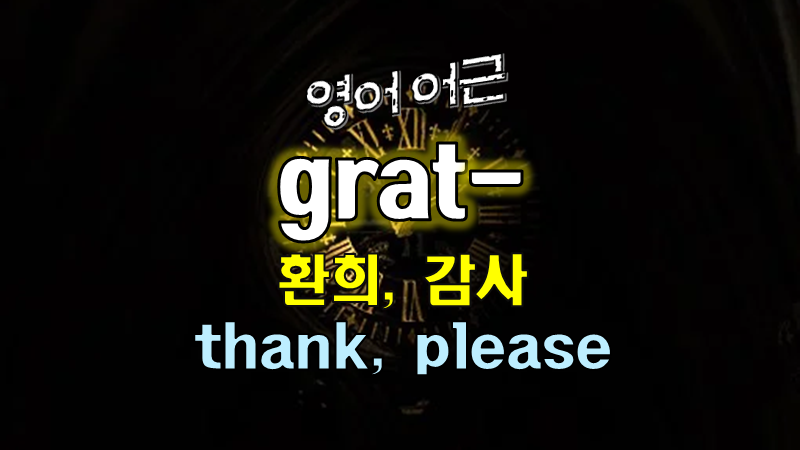 grat- 어근을 갖고 있는 주요 영어 단어를 살펴보면 앞의 두 단어 외에도 disagreement ‘의견충돌’, Congratulations ‘축하(해요!)’, disagree ‘동의하지 않다’, gracious ‘자애로운’ 등이 있습니다.