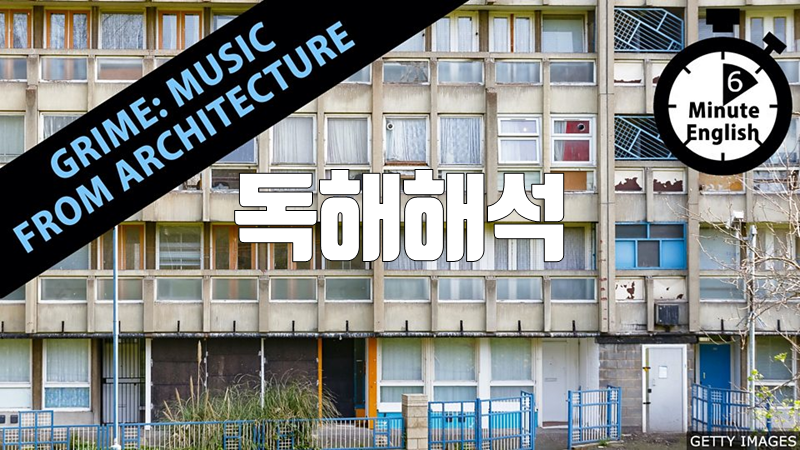 이 자료는 BBC Learning English 코너의 6 Minute English가 매주 재공하는 스크립트를 직역한 것입니다. 이번 주 스크립트의 주제는 'Grime: Music from architecture' 입니다. 해석은 철저하게 직역하였습니다. 관계사절 등의 절이나 긴 부정사, 동명사구, 삽입구 등은 이해를 위해 []를 사용해 묶었습니다. 이 글의 목적은 번역이 아니라 원문을 영어적으로 이해하는 것이기 때문입니다.