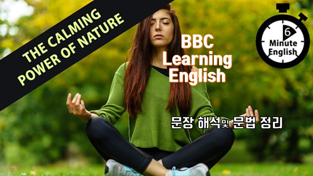 [직역] 연구에 따르면 그것은 우리의 바쁜 두되가 항상 경계하고 있는 것으로 보입니다, 그러나 우리가 자연으로 들어가면, 그것은 쉬게 되고, 찾아야 할 것이 그리 많지 않게 되고 그리고 우리는 휴식할 수 있습니다.