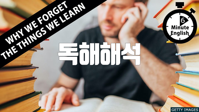 이 자료는 BBC Learning English 코너의 6 Minute English가 매주 재공하는 스크립트를 직역한 것입니다. 이번 주 스크립트의 주제는 'Why we forget the things we learn' 입니다. 해석은 철저하게 직역하였습니다. 관계사절 등의 절이나 긴 부정사, 동명사구, 삽입구 등은 이해를 위해 []를 사용해 묶었습니다. 이 글의 목적은 번역이 아니라 원문을 영어적으로 이해하는 것이기 때문입니다.