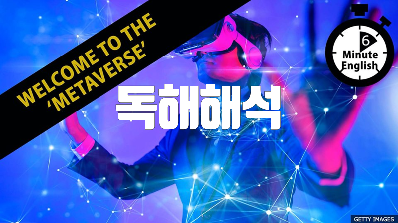 이 자료는 BBC Learning English 코너의 6 Minute English가 매주 재공하는 스크립트를 직역한 것입니다. 이번 주 스크립트의 주제는 'Welcome to the 'metaverse'' 입니다. 해석은 철저하게 직역하였습니다. 관계사절 등의 절이나 긴 부정사, 동명사구, 삽입구 등은 이해를 위해 []를 사용해 묶었습니다. 이 글의 목적은 번역이 아니라 원문을 영어적으로 이해하는 것이기 때문입니다.