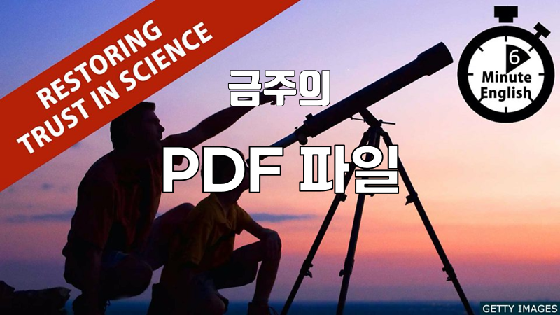 이 자료는 BBC Learning English 코너의 6 Minute English가 매주 재공하는 스크립트를 직역한 것입니다. 이번 주 스크립트의 주제는 'Restoring trust in science' 입니다. 해석은 철저하게 직역하였습니다. 관..