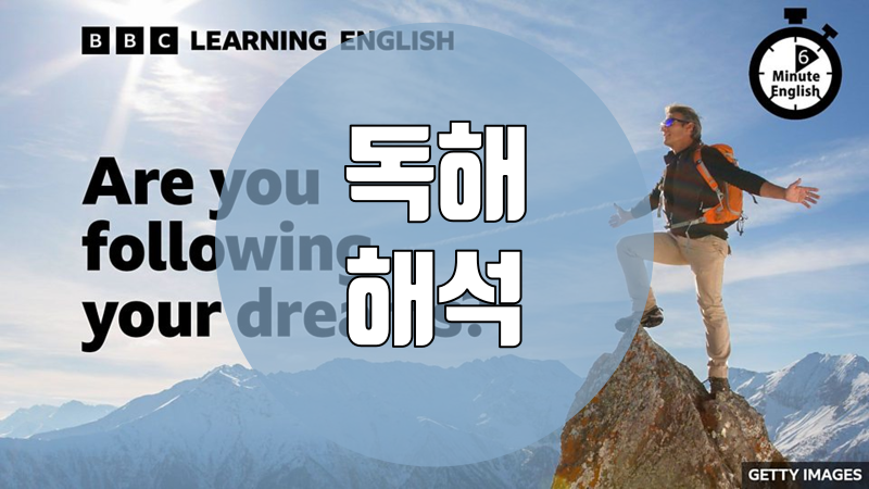 이 자료는 BBC Learning English 코너의 6 Minute English가 매주 재공하는 스크립트를 직역한 것입니다. 이번 주 스크립트의 주제는 'Are you following your dreams?' 입니다.