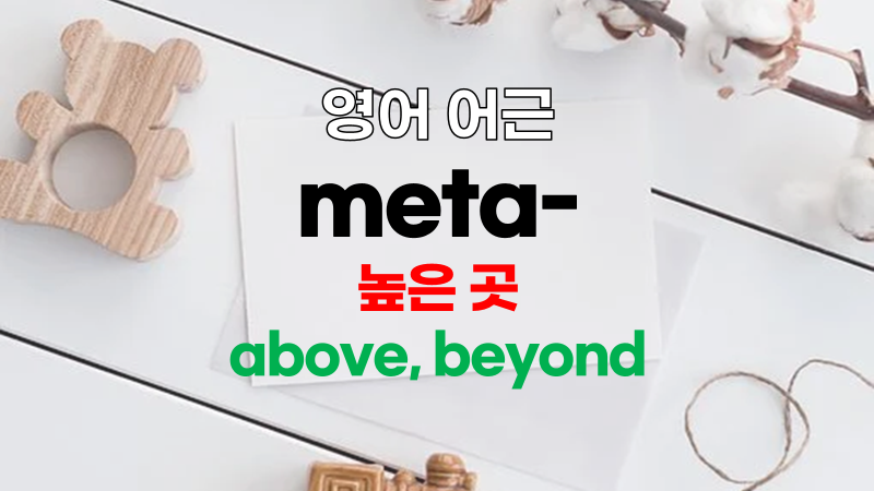 [어원] [Greek] meta over, across; change ~위에, ~를 건너서, 변화하다