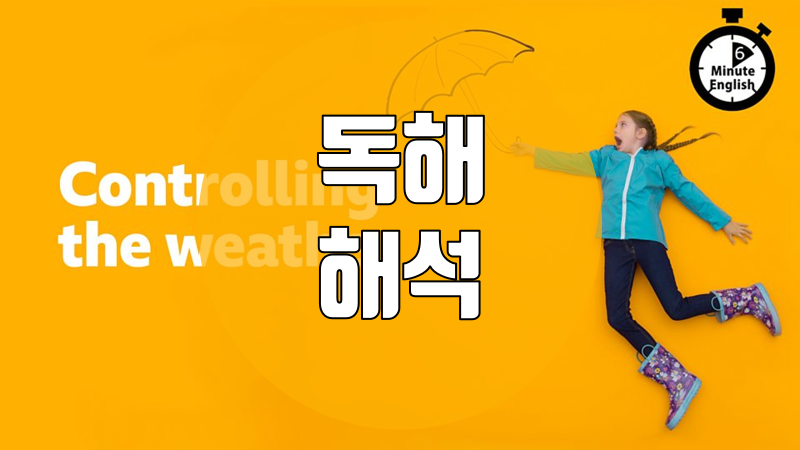 이 자료는 BBC Learning English 코너의 6 Minute English가 매주 재공하는 스크립트를 직역한 것입니다. 이번 주 스크립트의 주제는 'Controlling the weather' 입니다.