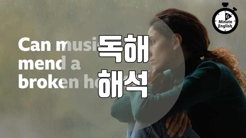 이 자료는 BBC Learning English 코너의 6 Minute English가 매주 재공하는 스크립트를 직역한 것입니다. 이번 주 스크립트의 주제는 'Can music mend a broken heart?' 입니다.