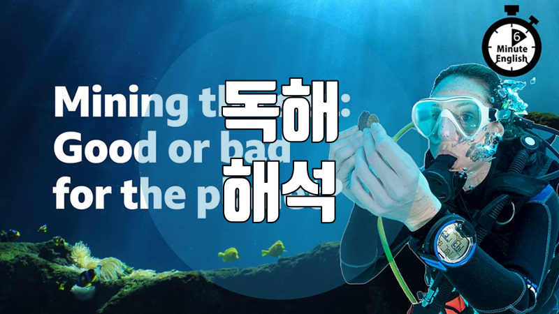 이 자료는 BBC Learning English 코너의 6 Minute English가 매주 재공하는 스크립트를 직역한 것입니다. 이번 주 스크립트의 주제는 'Deep-sea mining: Good or bad for the planet?' 입니다.