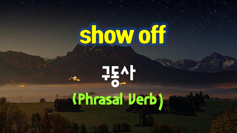 show off는 구동사이며 품사는 동사입니다. show off의 대략적인 의미는 「으스대다, ~을 자랑하다, (옷이 사람을) 돋보이게 하다」입니다. 아래의 자료는 show off에 대해 사전에 나와 있는 자료를 보기 편하게 정리한 것들입니다.
