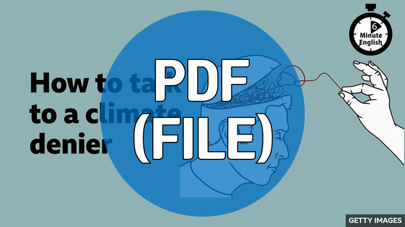 BBC 6 Minute English의 금주 주제인 How to talk to a climate denier은 개략적으로 다음의 개요를 갖고 있습니다. 기후 변화가 일어나고 있다고 믿지 않는 사람을 알고 있습니까? 대부분의 과학자들은 기후변