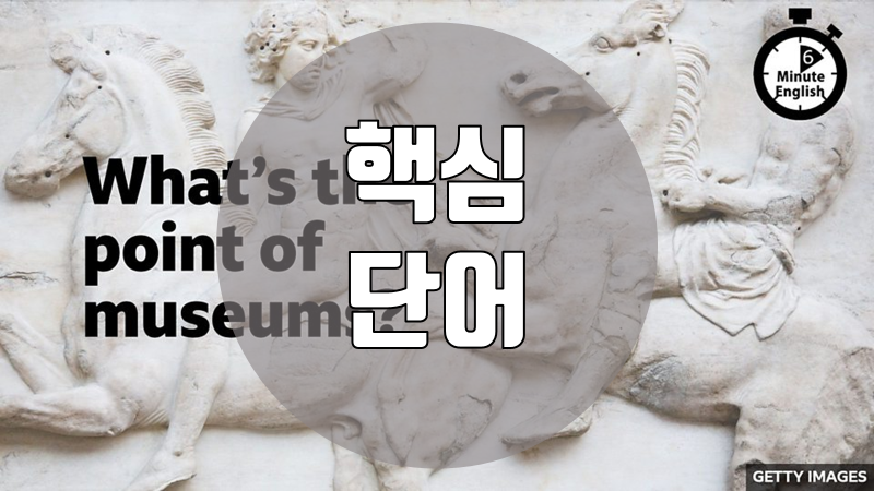 많은 박물관들이 제국주의 시대 기간에 고대의 보물들을 수탈한 것에 대해 비난을 받아 오고 있습니다. 그래서 유명한 파르테논 대리석과 같은 저들 이러한 문화재들은 되돌려 줘야만 합니다. 베스와 닐이 21의 세기에 논란이 많은 박물관의 역할을 논의합니다. 그리고 당신에게 관련된 어휘를 가르칩니다.