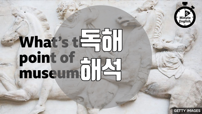 이 자료는 BBC Learning English 코너의 6 Minute English가 매주 재공하는 스크립트를 직역한 것입니다. 이번 주 스크립트의 주제는 'What's the point of museums?' 입니다.