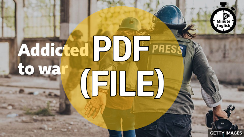 BBC 6 Minute English의 금주 주제인 Addicted to war은 개적으로 다음의 개요를 갖고 있습니다. 이 프로그램에서 우리는 BBC 종군기자 퍼갈 킨의 특별한 삶에 대해 듣게 될 것입니다. 그의 보도는 텔레비전