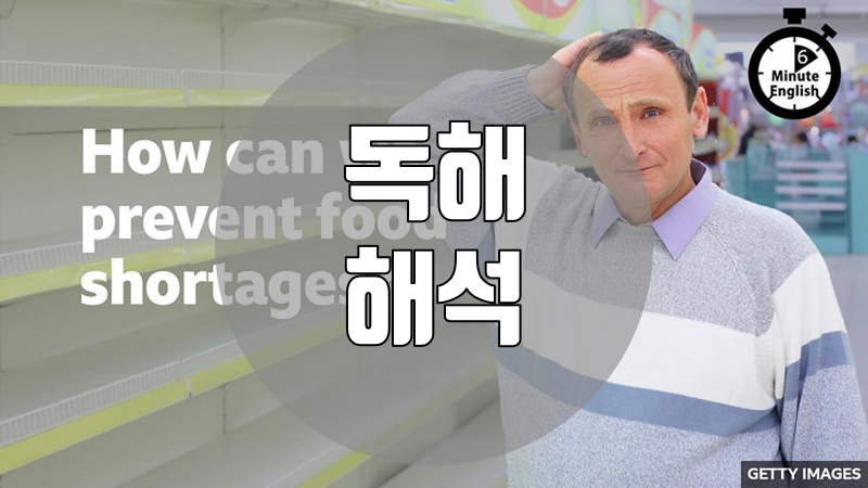 이 자료는 BBC Learning English 코너의 6 Minute English가 매주 재공하는 스크립트를 직역한 것입니다. 이번 주 스크립트의 주제는 'Food shortages' 입니다.