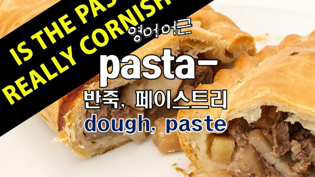 영어 pasty는 ‘반죽(dough)’, ‘pastry(페이스트리 반죽)’을 뜻하는 프랑스어 paste에서 유래했고 이 단어는 다시 라틴어 pasta에서 유래했습니다. pasta는 ‘반죽(dough, paste)’란 뜻이었습니다.