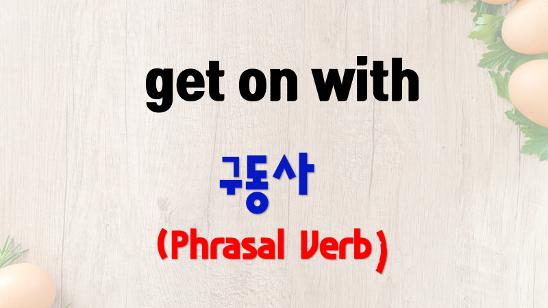 get on with는 구동사이며 품사는 동사입니다. get on with의 대략적인 의미는 「~이 …하게 되어 가다, (특히 중단했다가) ~을 계속하다, ~와/(함께) 잘 지내다, …와 일치하다, …을 해나가다.」입니다. 아래의 자료는 get on with에 대해 사전에 나와 있는 자료를 보기 편하게 정리한 것들입니다.