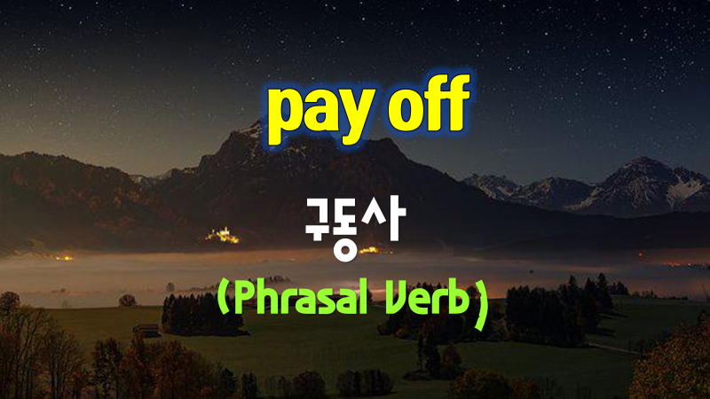 pay off는 구동사이며 품사는 동사입니다. pay off의 대략적인 의미는 「(특히 위험이 따르는 계획/행동이) 성공하다[성과를 올리다], ~에게 급료를 주고 해고하다, (돈으로) ~를 매수하다, ~을 다 갚다[청산하다]」입니다. 아래의 자료는 pay off에 대해 사전에 나와 있는 자료를 보기 편하게 정리한 것들입니다.
