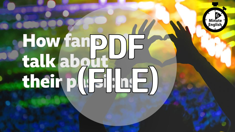 BBC 6 Minute English의 금주 주제인 How fans talk about their passions은 개략적으로 다음의 개요를 갖고 있습니다. 팬덤은 단순히 팬이 되는 것만이 아니며, 그리고 이제 팬덤의 세계는 자신만의 언어를 개