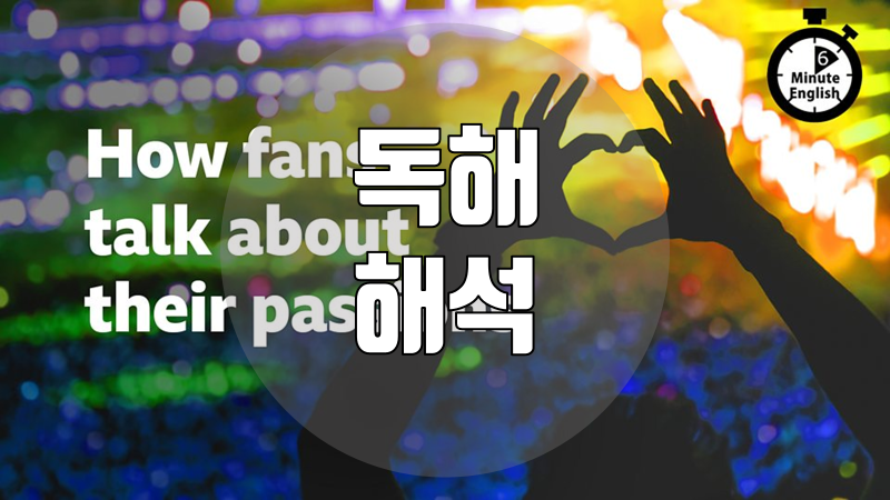 이 자료는 BBC Learning English 코너의 6 Minute English가 매주 재공하는 스크립트를 직역한 것입니다. 이번 주 스크립트의 주제는 'How fans talk about their passions' 입니다.