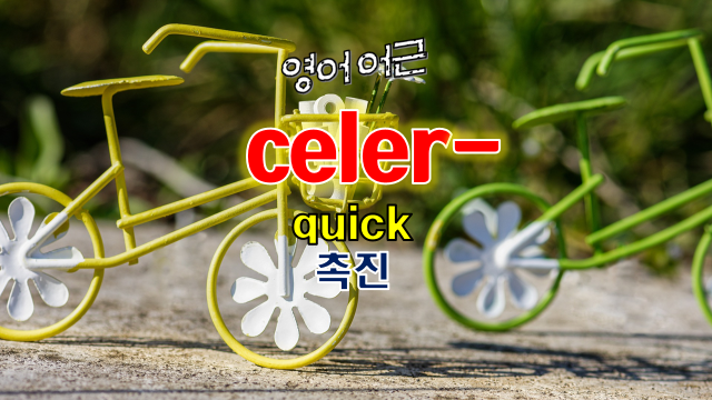 영어의 celer- 어근은 라틴어 celerare(hasten, 서두르다), celer(swift, 우뚝 솟다)를 어원으로 합니다. 영어에 들어온 단어 수는 accelerate(가속화되다), decelerate(속도를 줄이다), celerity(민첩함,기민함) 등 몇 개 되지 않습니다. 그러나 종종 '숨다(hide)'의 의미를 갖고 있는 cel- 어근과 혼돈을 주는 경우가 있어 알아 둘 필요가 있습니다.