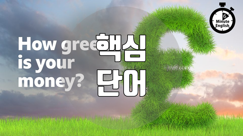 우리가 우리의 돈을 은행에 맡기면, 그것은 투자합니다. 다른 사업에 자금을 대기 위해. 그런데 그 중 몇몇은 환경 친화적인 것에서 멉니다. 베스와 닐이 이것을 의논합니다. 그리고 당신에게 어느 정도 슬모있는 낱말들을 가르칩니다.