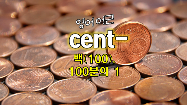 라틴어 centum은 100이라는 뜻입니다. 여기서 나온 영어 어근이 cent-, centi- 입니다. 이들 어근이 들어간 단어는 100 또는 100 분의 1의 의미를 담고 있습니다.