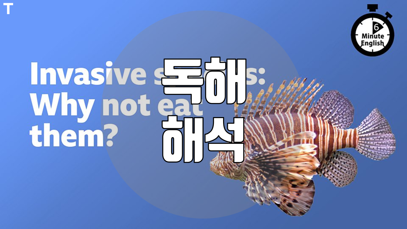 이 자료는 BBC Learning English 코너의 6 Minute English가 매주 재공하는 스크립트를 직역한 것입니다. 이번 주 스크립트의 주제는 'Invasive species: Why don't we eat them?' 입니다.