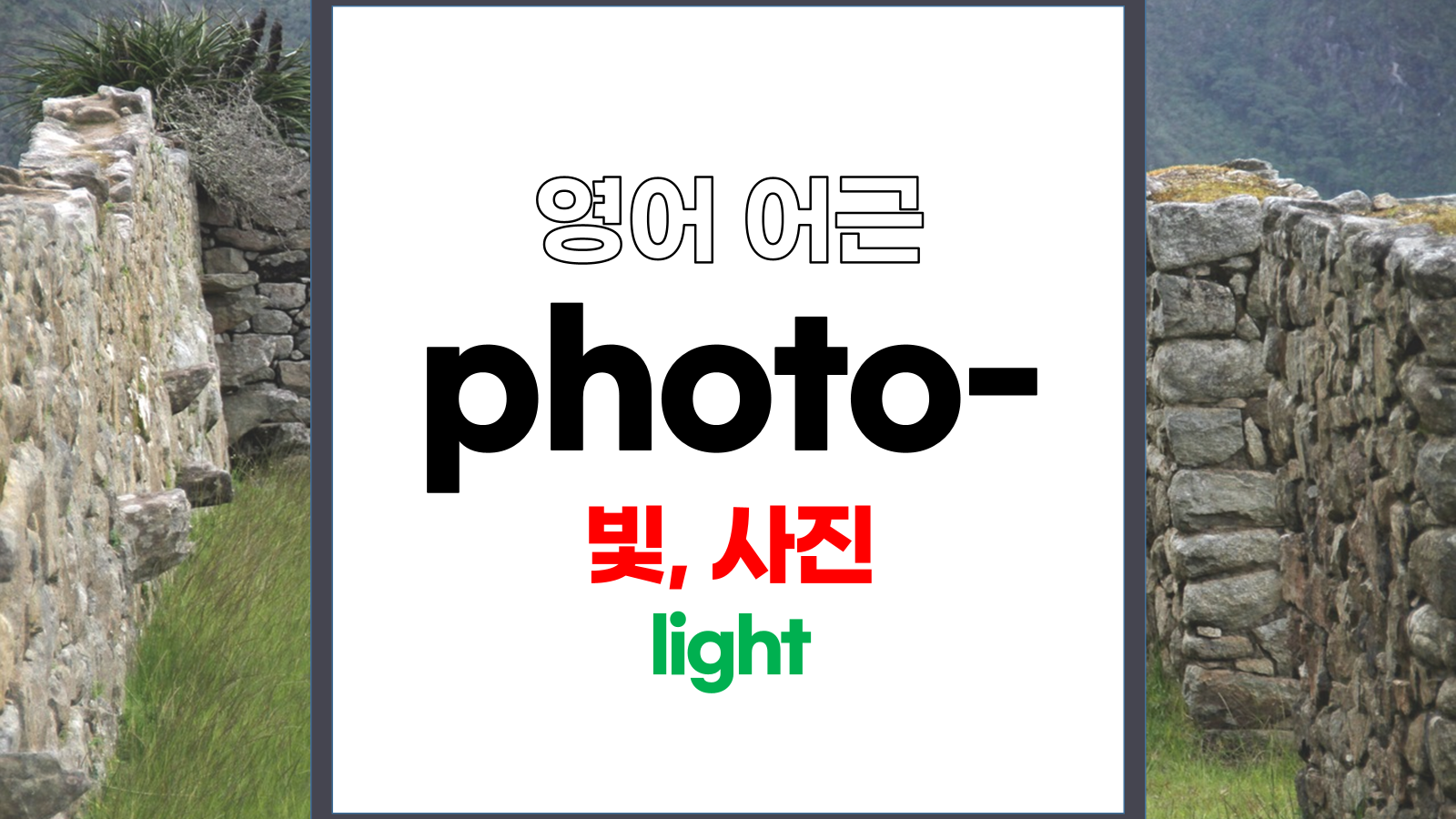 [어근] ⑴ photo; 빛, light ⑵ graph; 글, 쓰다, write ⑶ y; 명사 어미