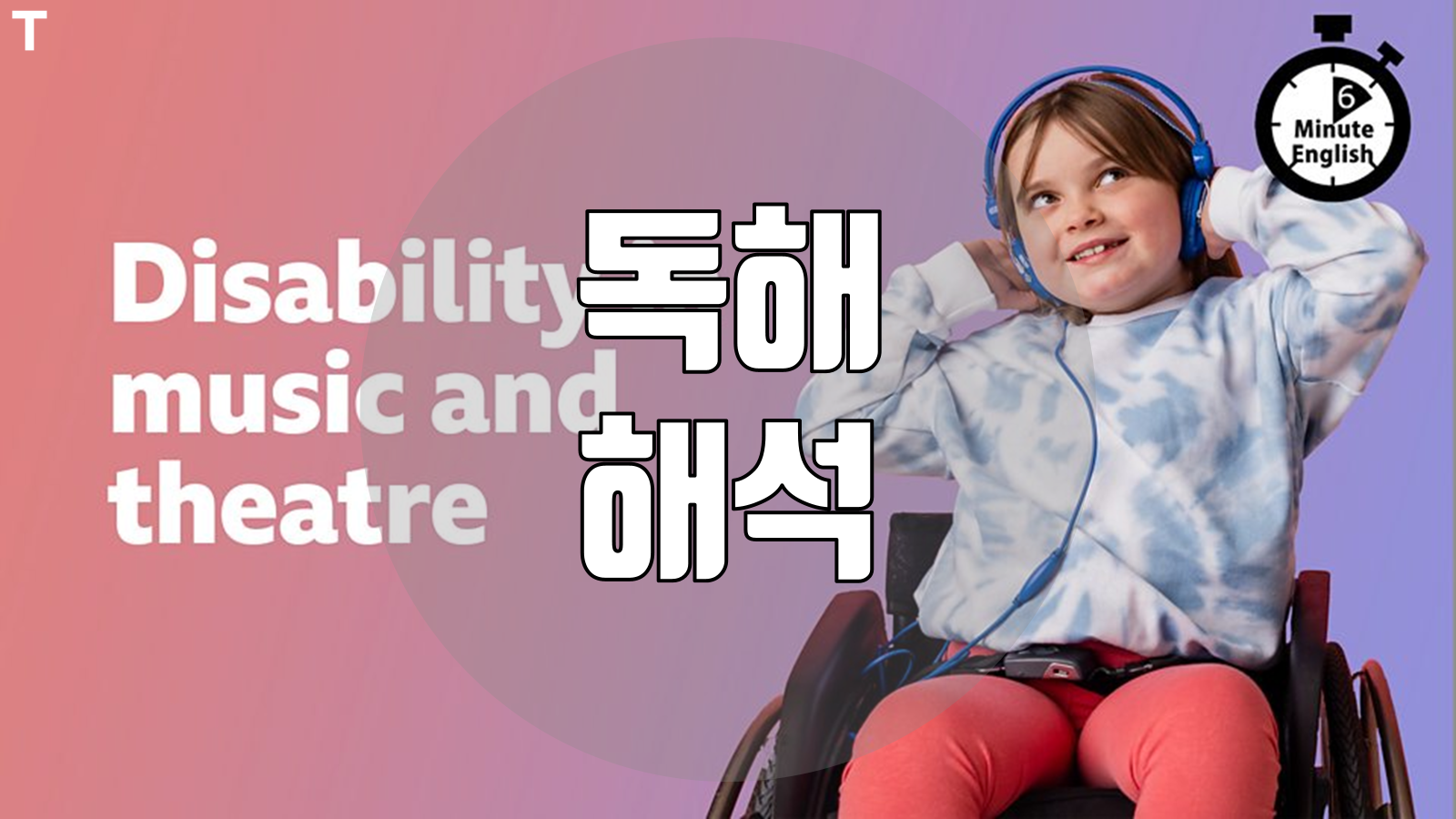 이 자료는 BBC Learning English 코너의 6 Minute English가 매주 재공하는 스크립트를 직역한 것입니다. 이번 주 스크립트의 주제는 'Disability in music and theatre' 입니다.