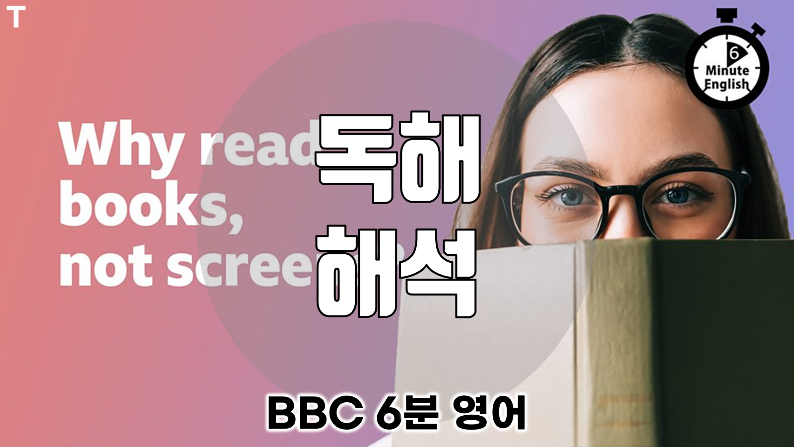 이 자료는 BBC Learning English 코너의 6 Minute English가 매주 재공하는 스크립트를 직역한 것입니다. 이번 주 스크립트의 주제는 'Why read books, not screens?' 입니다.