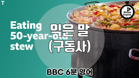 50년 동안 냄비에 담겨 있던 스튜를 먹으시겠어요? 베스와 필이 이에 대해 토론하고 새로운 어휘를 알려드립니다.(Would you eat a stew that's been in a pot for 50 years? Beth and Phil discuss this and teach you some new vocabulary.)