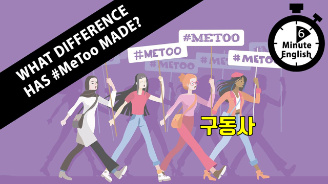 이 주일의 6 Minute English-What difference has #MeToo made?에는 break up, bring together, carry on with, come back, come forward, focus on, keep on, open up, set out, speak up, take a look, think up, work with, go viral 등이 포함되어 있습니다.