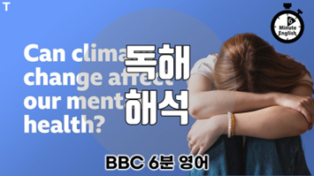 이 자료는 BBC Learning English 코너의 6 Minute English가 매주 재공하는 스크립트를 직역한 것입니다. 이번 주 스크립트의 주제는 'Can climate change affect our mental health?' 입니다.
