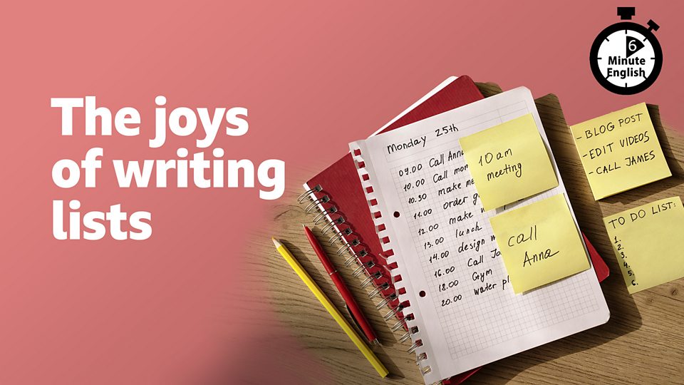 이 자료는 BBC Learning English 코너의 6 Minute English가 매주 재공하는 스크립트를 직역한 것입니다. 이번 주 스크립트의 주제는 'The joys of writing lists' 입니다.