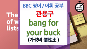 ☞ 다음에 해외 드라마나 기사에서 bang for your buck이 보이면, “가성비”라고 떠올리시면 됩니다.