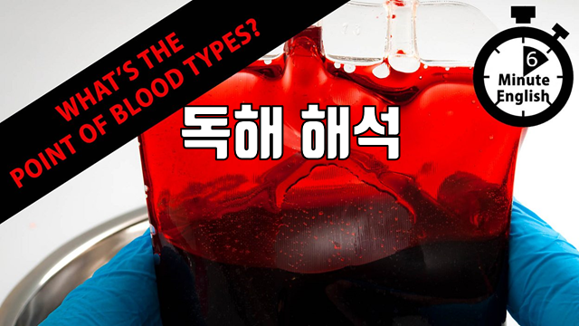 이 자료는 BBC Learning English 코너의 6 Minute English가 매주 재공하는 스크립트를 직역한 것입니다. 이번 주 스크립트의 주제는 'What’s the point of blood types?' 입니다. 해석은 철저하게 직역하였습니다. 관계대명사나 긴 부정사나 동명사구, 삽입구 등은 이해를 위해 []를 사용해 묶었습니다. 이 글의 목적은 번역이 아니라 원문을 영어적으로 이해하는 것이기 때문입니다.