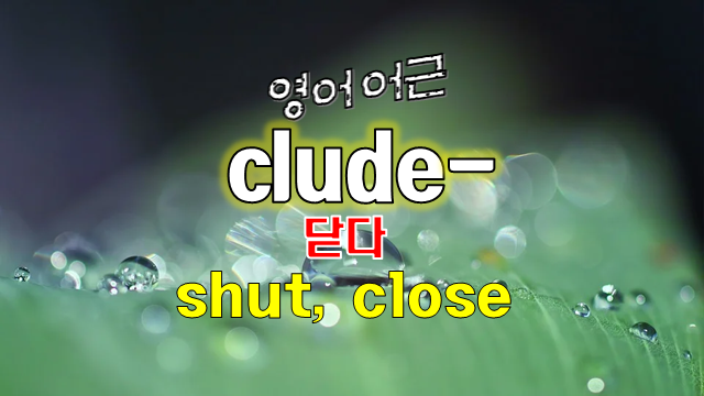 라틴어 claudere와 clausus를 어원으로 하는 영어 어근은 clude-, clus-, clos- 입니다.