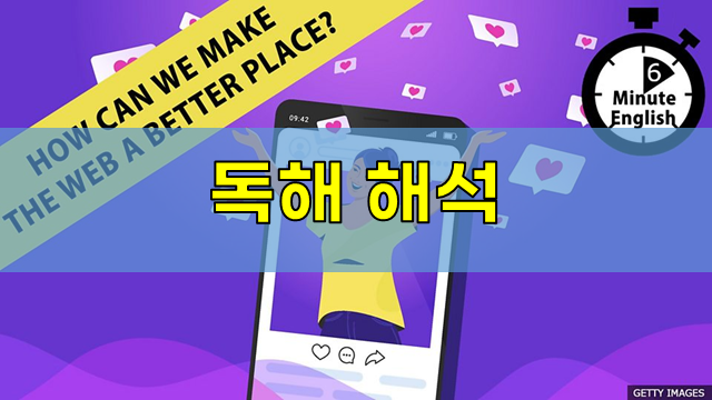 이 자료는 BBC Learning English 코너의 6 Minute English가 매주 재공하는 스크립트를 직역한 것입니다. 이번 주 스크립트의 주제는 'How can we make the web a better place?' 입니다. 해석은 철저하게 직역하였습니다. 관계대명사나 긴 부정사나 동명사구, 삽입구 등은 이해를 위해 []를 사용해 묶었습니다. 이 글의 목적은 번역이 아니라 원문을 영어적으로 이해하는 것이기 때문입니다.