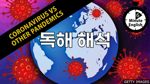 이 자료는 BBC Learning English 코너의 6 Minute English가 매주 재공하는 스크립트를 직역한 것입니다. 이번 주 스크립트의 주제는 'Coronavirus vs other pandemics' 입니다. 해석은 철저하게 직역하였습니다. 관계대명사나 긴 부정사나 동명사구, 삽입구 등은 이해를 위해 []를 사용해 묶었습니다. 이 글의 목적은 번역이 아니라 원문을 영어적으로 이해하는 것이기 때문입니다.