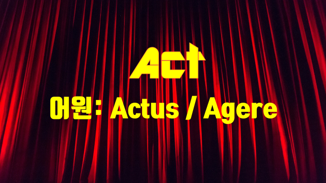 - [Latin] actus - pp of agere; a doing (agere의 과거분사, 행동하는 것)