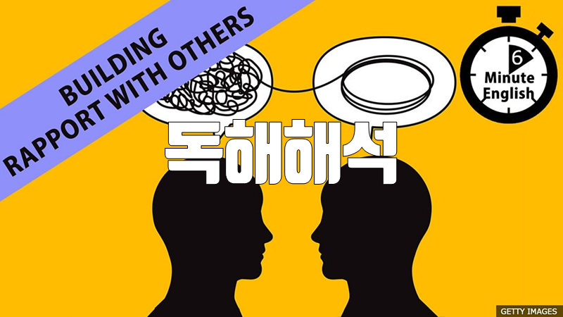 이 자료는 BBC Learning English 코너의 6 Minute English가 매주 재공하는 스크립트를 직역한 것입니다. 이번 주 스크립트의 주제는 'Building rapport with others' 입니다. 해석은 철저하게 직역하였습니다. 관계사절 등의 절이나 긴 부정사, 동명사구, 삽입구 등은 이해를 위해 []를 사용해 묶었습니다. 이 글의 목적은 번역이 아니라 원문을 영어적으로 이해하는 것이기 때문입니다.